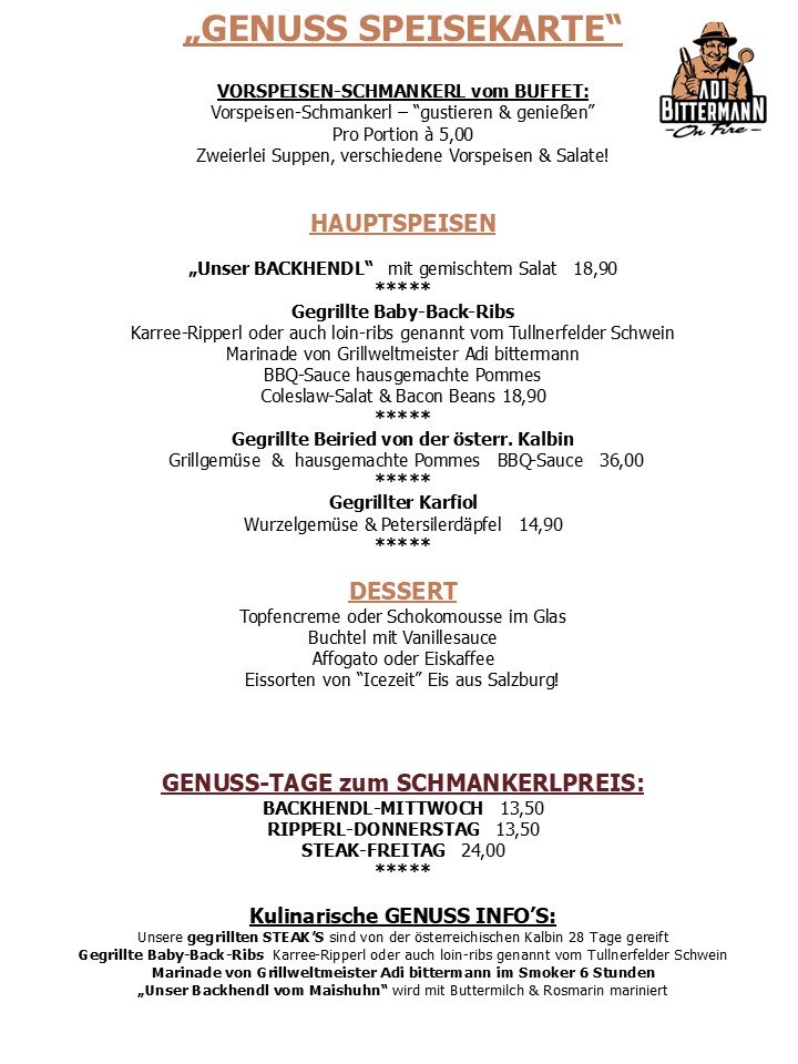 Das Genuss Wirtshaus ist bekannt für seine exzellente österreichische Küche, die mit frischen, saisonalen Zutaten und klassisch gegrilltem aufwartet.